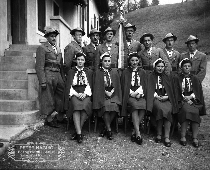 Dekliški in fantovski odsek Orlov pred Homškim prosvetnim domom, leta 1940 - F 1940 1 4 015
